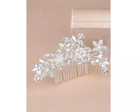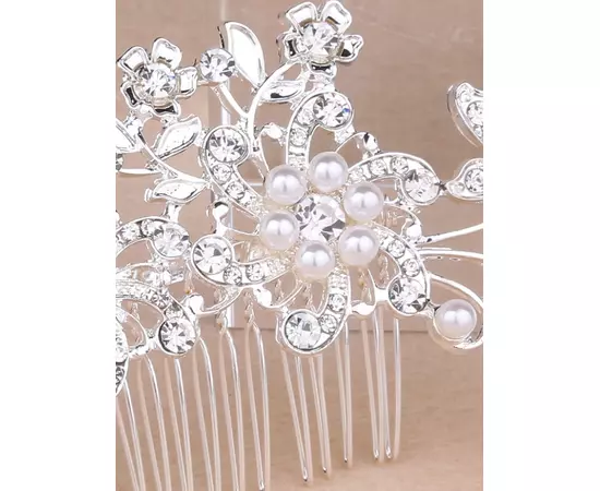 Accesoriu de Par Mireasa cu Strasuri si Perle 11x8cm, Argintie - 22783