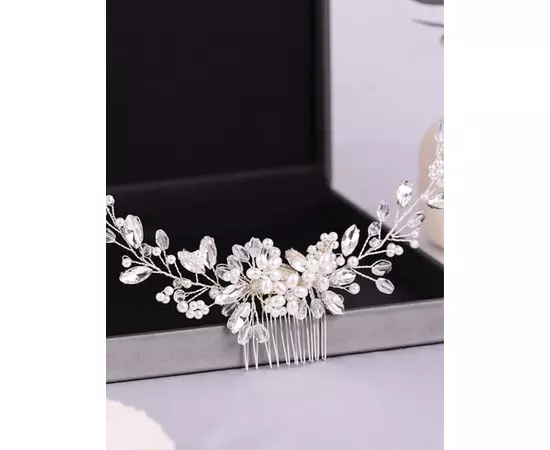 Accesoriu de Par Mireasa cu Strasuri si Perle, Argintie - 92329