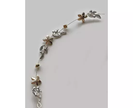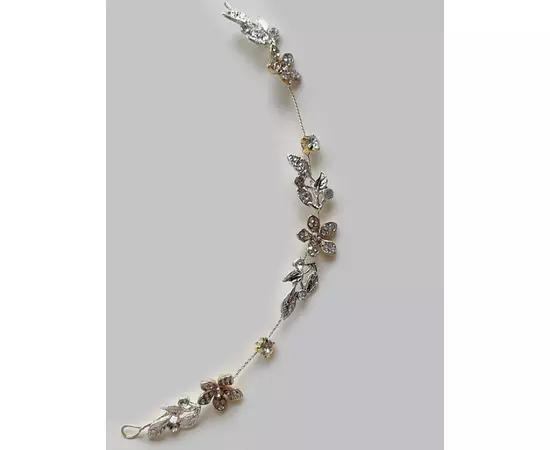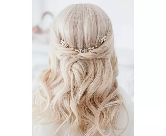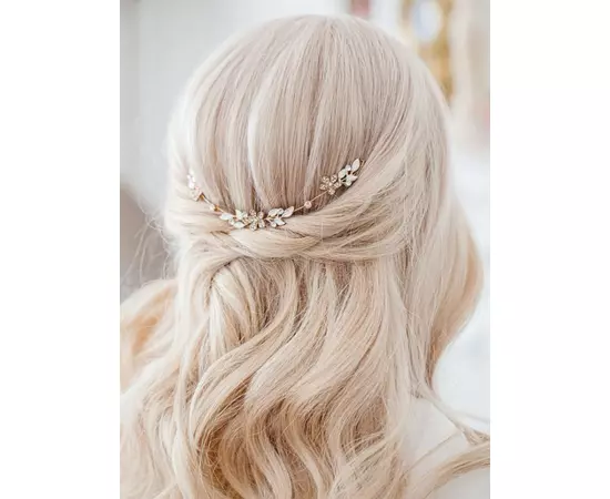 Accesoriu de Par Mireasa, Model Frunze si Flori cu Strasuri Aurii - 18 cm