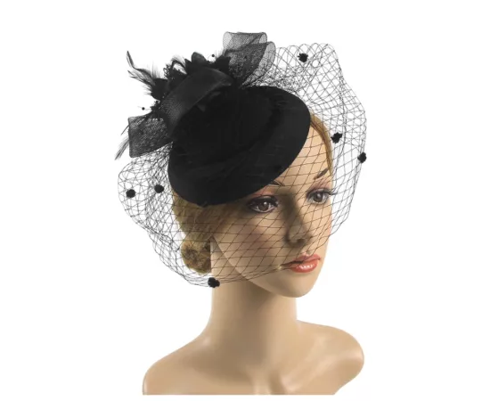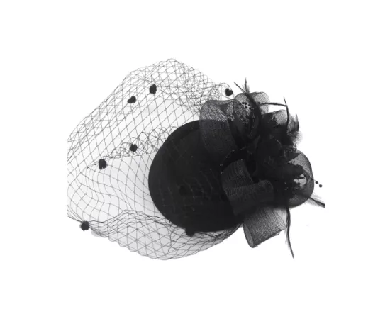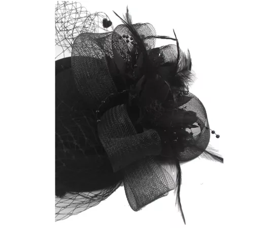 Accesoriu Palarie Dama, cu Pene, Flori si Voal Negru - 07554