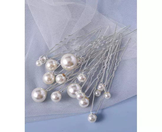 Ace Par Mireasa, Model cu Perle 1 x 8 cm, Alb - 18 BUC