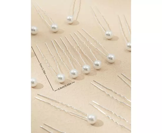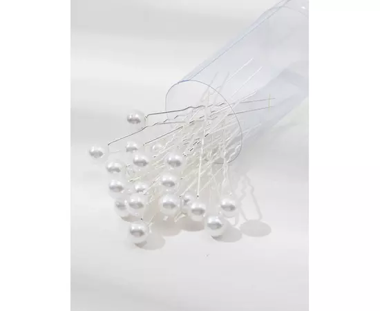 Ace Par Mireasa, Model cu perle albe 7 x 0.9 cm, Argintii - 20 BUC