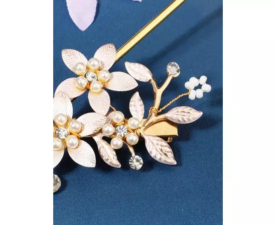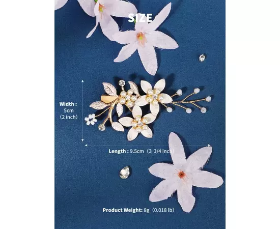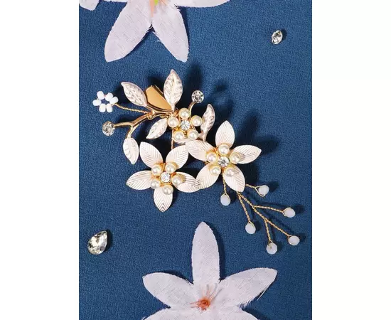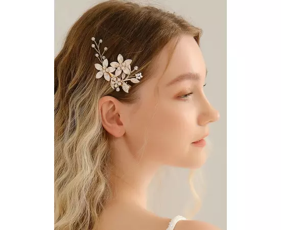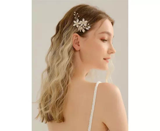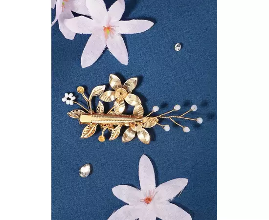 Agrafa de Par Mireasa, Model cu Flori si Frunze,Aurie- 45800