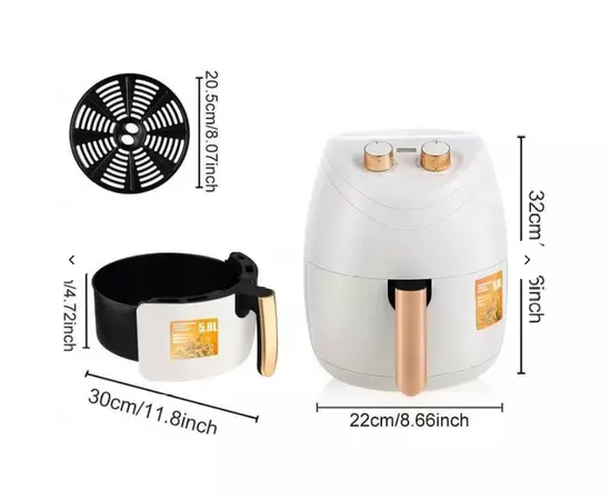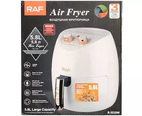 Air Fryer RAF 5232W - Friteuza cu Aer Cald, Fara Ulei, Capacitate 5.8L, 1500W, Alb