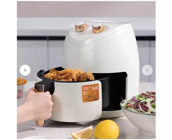 - Reducerea consumului de ulei și grăsimi: Air fryer-ul permite gătirea alimentelor cu cantități reduse sau chiar fără ulei, contribuind la obținerea unei mese maisănătoase și mai puțin grase.