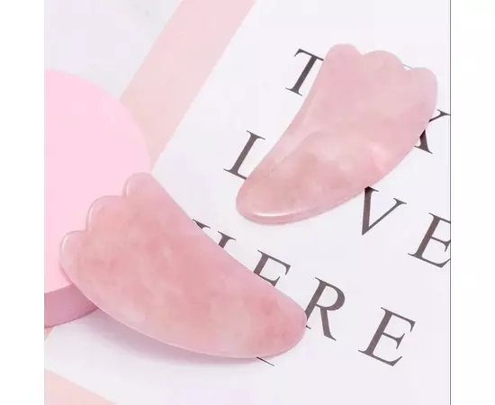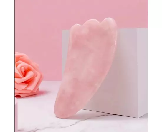 Aparat Masaj Facial - Piatra Gua Sha din Cuart Roz - 10 cm