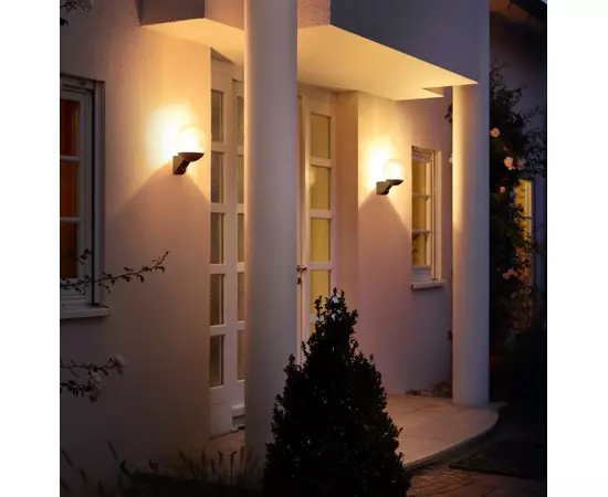 Aplica are un grad de rezistenta, de IP44, ce protejeaza impotriva corpurilor solide si a apei pulverizate fiind este special creata pentru spatiul exterior.