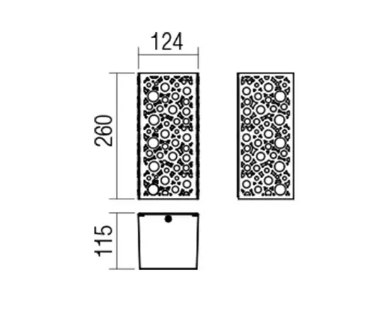 Corpul de iluminat este construit pe dimensiunile: 260 x 124 x 115 mm (inaltime x latime x distanta de la perete). Gradul de protectie de IP44 ii ofera o rezistenta sporita la factorii atmosferici (umiditate si corpuri solide).