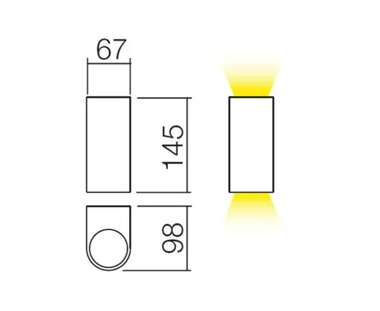Aplica este special creata pentru spatiul exterior datorita gradului ridicat de protectie impotriva corpurilor solide si a apei pulverizate de IP44, dimensiunile acesteia sunt 98 x 67 x 145 mm.
