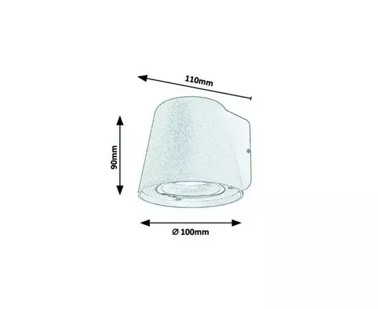 Indicele de Protectie IP54 garanteaza ca gama de produse Mandal este protejata contra prafului daunator si a jeturilor de apa, din orice directie. Dimensiunile lampii de exterior sunt urmatoarele: latime 100 mm, inaltime 90 mm, distanta de la perete 110 mm.