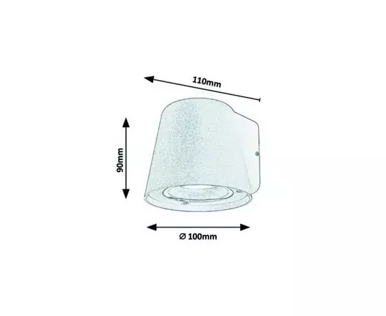 Indicele de Protectie IP54 garanteaza ca gama de produse Mandal este protejata contra prafului daunator si a jeturilor de apa, din orice directie. Dimensiunile lampii de exterior sunt urmatoarele: latime 100 mm, inaltime 90 mm, distanta de la perete 110 mm.
