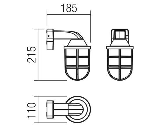 Indicele de Protectie IP44 garanteaza ca gama de produse este protejata contra factorilor de mediu (apa si praf). Dimensiunile lampii sunt urmatoarele: inaltime 215 mm, adancime 185 mm, latime 110 mm.