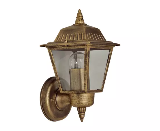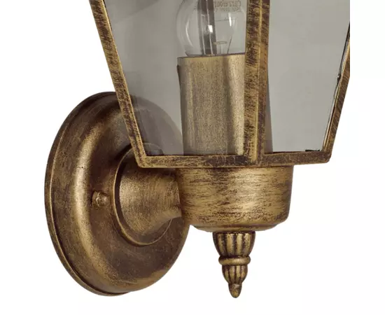Aplica este un corp de iluminat clasic, cu structura din aluminiu, finisaj bronz antic si abajur din sticla transparenta, orientat in sus.