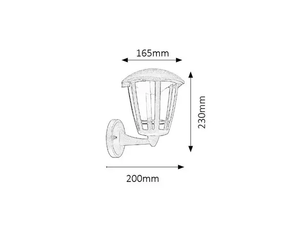 Dimensiunile corpului de iluminat sunt de 165 x 230 x 200 mm (d x i x a). Gradul de rezistenta, de IP44, protejeaza impotriva corpurilor solide si impotriva apei pulverizate oferind durabilitate.