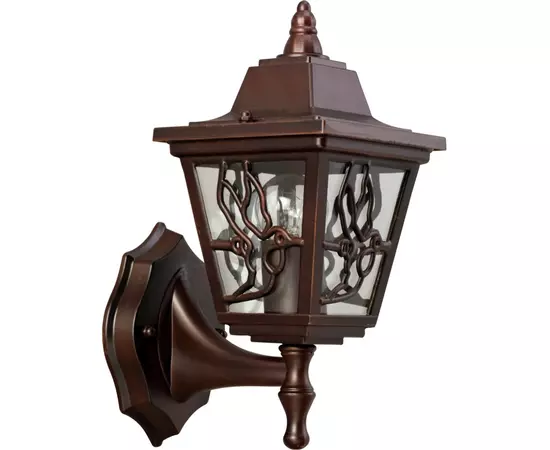 Aplica este un corp de iluminat clasic, cu structura din aluminiu si abajur din sticla, orientat in sus. Combinatia cromatica dintre structura maro si dispersorul transparent asigura un contrast usor, elegant si clasic, care va incanta orice privire.