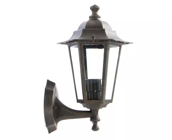 Aplica pentru exterior este confectionata in stil clasic, din aluminiu turnat sub presiune, finisaj rugina si dispersor din sticla, orientat in sus.