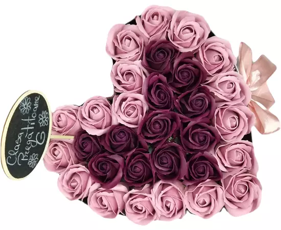 Aranjament Floral Trandafiri Sapun - Cutie Inima 31 Trandafiri Roz cu Visiniu - VLTN131