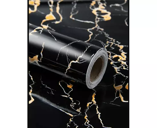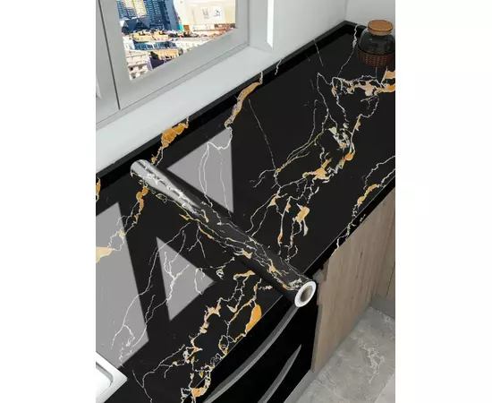 Autocolant Bucatarie Rola-Sticker Impermeabil,Efect Marmura,Negru cu Auriu,300x45cm-44776