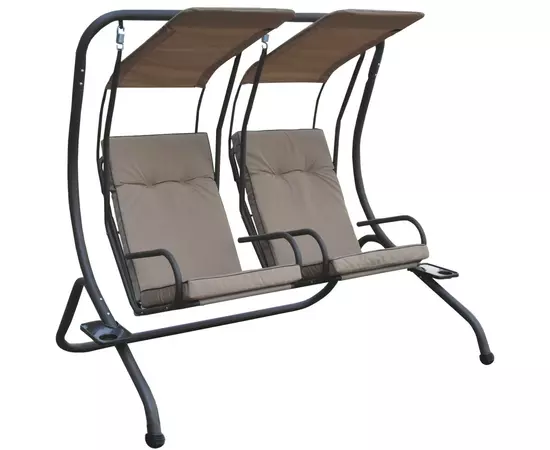 Balansoarul poate sustine o greutate de pana la 160 kg iar cele 2 acoperisuri, confectionate din poliester, ofera protectie impotriva razelor de soare in zilele calduroase de vara. Pentru un confort sporit, balansoarul este prevazut si cu 2 suporturi de pahare din plastic, montate pe cadru.