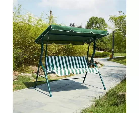 Balansoarul are scheletul fabricat din otel acoperit cu o pelicula fina de vopsea ceea ce asigura rezistenta in timp. Sezutul, spatarul si acoperisul sunt fabricate din poliester acoperit cu o pelicula de poliuretan care previne acumularea de murdarie intre fibre.