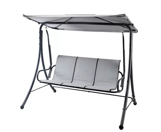 Balansoarul este conceput pentru 3 persoane si are o durata indelugata de folosinta datorita materialelor din care este fabricat. Scheletul este fabricat din otel iar acoperisul si perna pentru sezut, sunt fabricate din poliester, special tratat pentru a asigura protectia impotriva razelor solare si a apei.