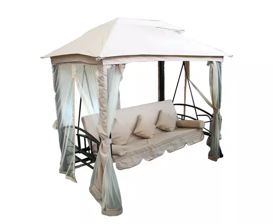 Conceput pentru 3 persoane balansoarul are o durata indelugata de folosinta datorita materialelor din care este fabricat. Scheletul este fabricat din otel iar perna si peretii sunt fabricate din poliester, special tratat pentru a asigura protectia impotriva razelor solare si a apei.