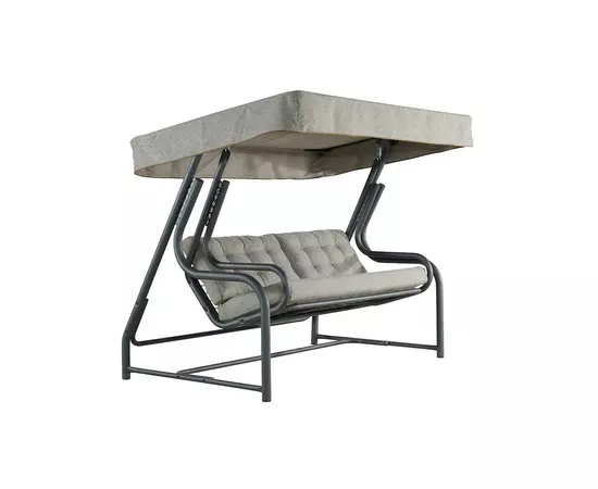 Balansoarul cu 3 locuri, gri este ideal pentru amenajarea unui spatiu de relaxare in curte sau pe terasa. Scheletul este fabricat din metal, iar acoperisul si perna pentru sezut, sunt fabricate din poliester, special tratat pentru a asigura protectia impotriva razelor solare.