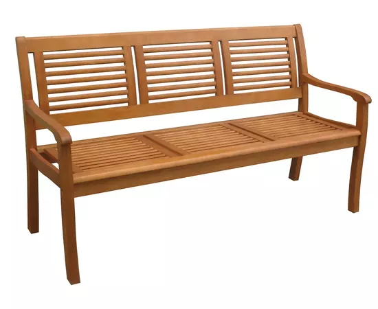 Banca din lemn are un design elegant, cu spatar si este construita din lemn esenta exotica (eucalipt). Lemnul este tratat special pentru a rezista o perioda cat mai mare de timp la actiunea factorilor de mediu.