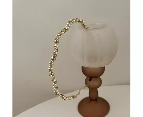 Bentita de par aurie cu perle, modelul 13844, este o bijuterie fina și delicată, care adaugă un aer de eleganță și rafinament oricărei coafuri. Perlele sunt dispuse cu atenție, conferind acestei accesorii un aspect sofisticat și clasic. Cu un design atemporal, această bentita este o alegere potrivită pentru diverse ocazii, de la evenimente formale la momente mai casual.