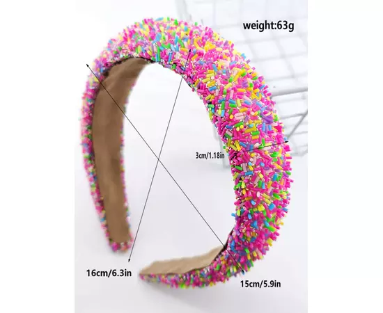 Bentita de par cu decoratiuni multicolore, modelul 30110, este o alegere vibranta și plina de culoare pentru a completa orice coafura. Culoarea roz adaugă un element jucaus și feminin, iar circumferința de 46 de centimetri asigură o potrivire confortabilă și sigură pe cap.