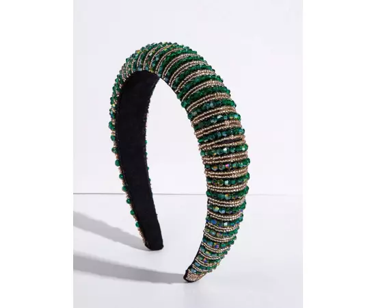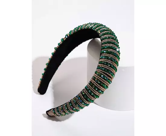 Bentita de Par Decorata cu Cristale, Verde - 12715