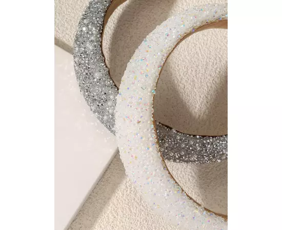 Cu un design versatil, această bentita se potrivește cu ușurință într-o varietate de ocazii, de la evenimente speciale la momente mai casual. Culoarea și strălucirea strasurilor aduc un strop de glamour, conferind coafurii tale o notă de eleganță și rafinament.