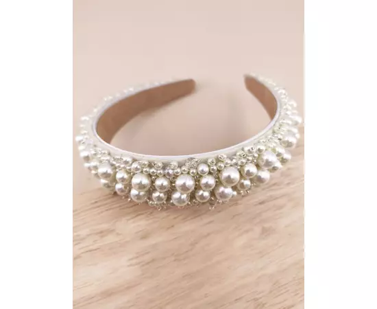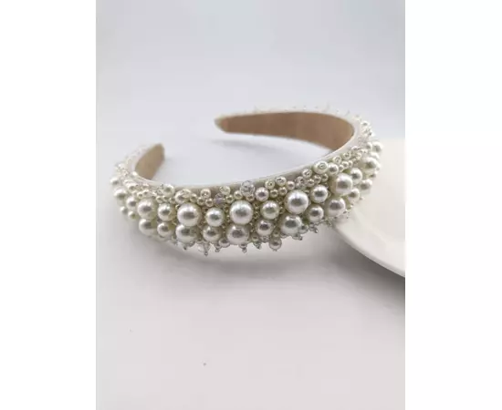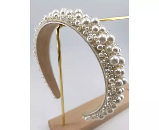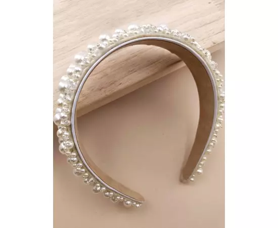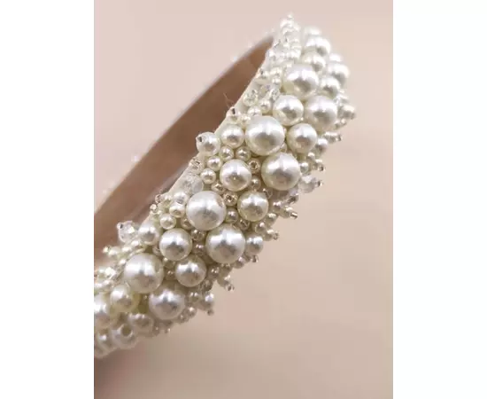 Perlele decorative adaugă un farmec aparte, dispuse cu atenție pe întreaga lungime a bentitei. Acestea oferă un joc subtil de lumină, transformând bentita într-un accesoriu cu un echilibru perfect între eleganță și subtilitate.