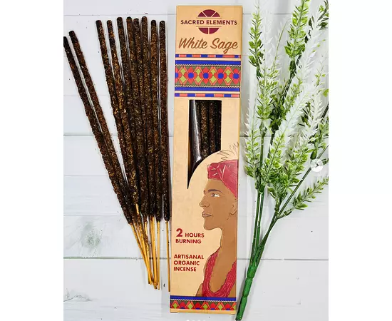 Bețișoare Parfumate Sacred Elements - Aroma White Sage sunt confectionate din rasina naturala si ulei esential din tamaie rasini, cu aroma lemnoasa, fiecare cutie avand 10 betisoare pentru aromaterapie.