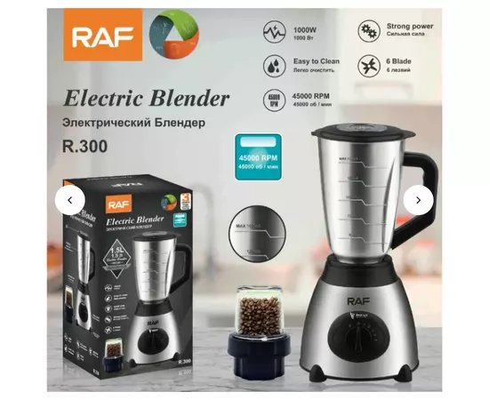 Blender Electric 2 in 1 RAF 300 cu Vas din Otel Inoxidabil si Rasnita pentru Masala,Capacitate 1.5L, 1000W
