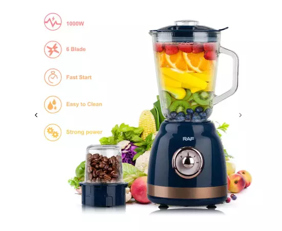 Blender Electric RAF 2827, 1000W, Capacitate 1.5L, cu 6 Lame Otel Inoxidabil + Rasnitade cafea