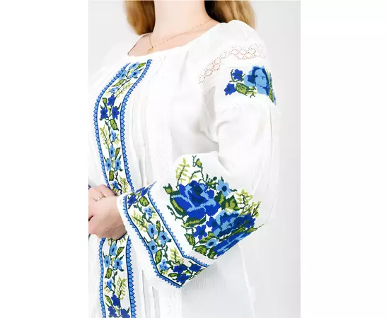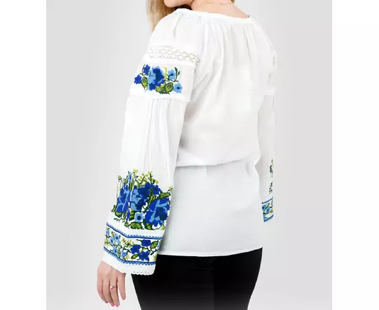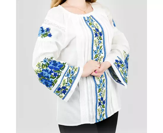 Bluza Alba cu Motiv Floral Albastru - BMG179