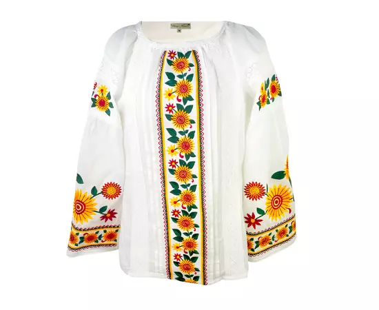 Bluza Alba cu Motiv Floral Galben - BMG94