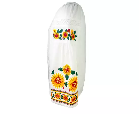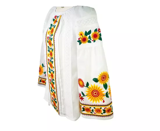 Bluza tip ie alba din bumbac cu maneca lunga si motiv floral galben.