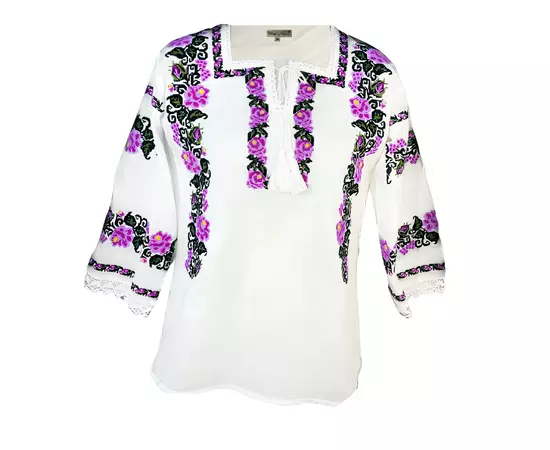Bluza alba cu motiv floral mov - BMG135