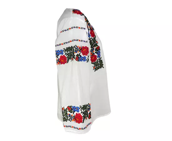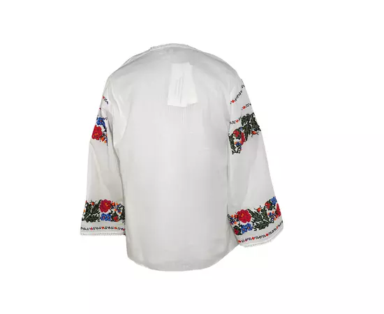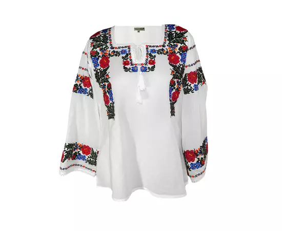 Bluza tip ie alba din bumbac cu maneca lunga si motiv floral multicolor.