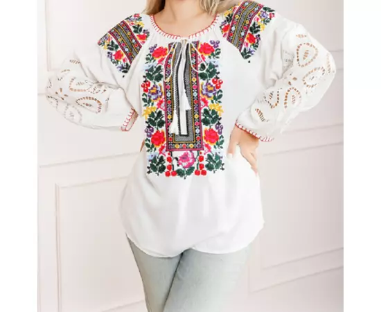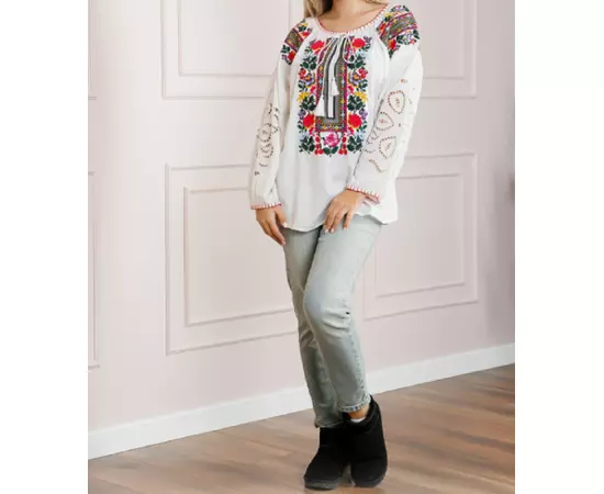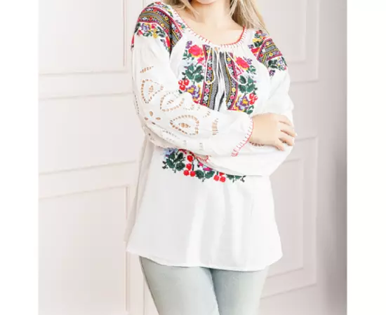 Bluza Alba cu Motiv Floral Multicolor - BMG171