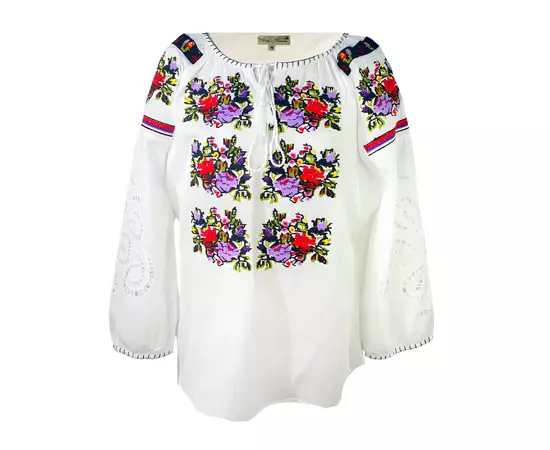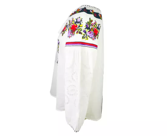 Bluza tip ie alba din bumbac cu maneca lunga si motiv floral multicolor.