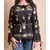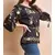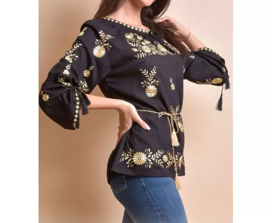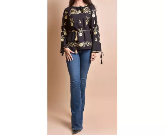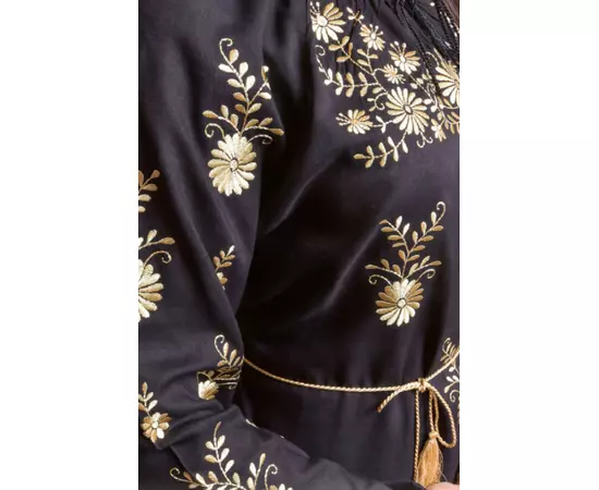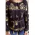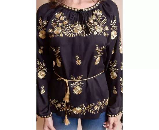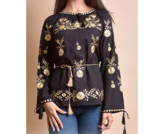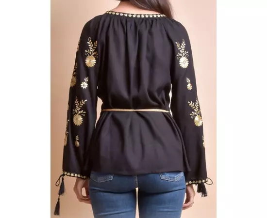 Bluza tip ie neagra din viscoza cu maneca lunga si motiv floral auriu