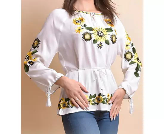 Bluza tip ie alba din viscoza cu maneca lunga si motiv floral galben