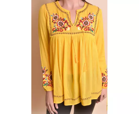 Bluza Galbena cu Motiv Floral Multicolor - BMG 101