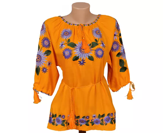 Bluza tip ie galbena din viscoza cu maneca 3/4 si motiv rosu