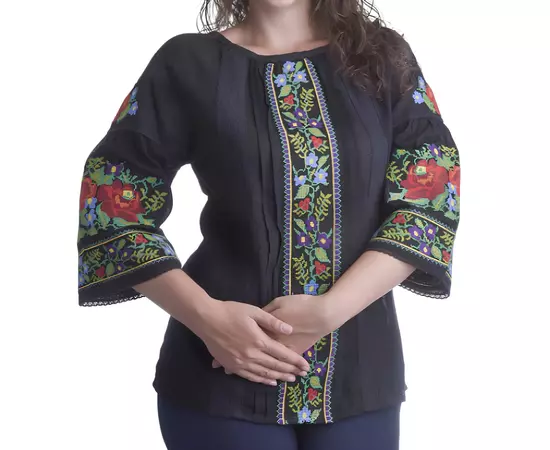Bluza Neagra cu Motiv Floral Multicolor - BMG169