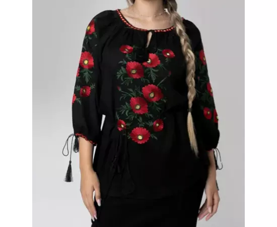 Bluza Neagra cu Motiv Floral Rosu - BMG87