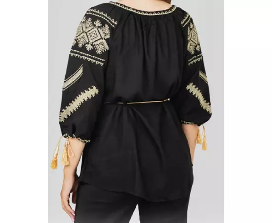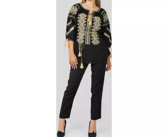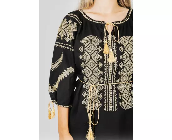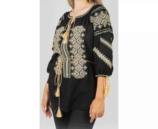 Bluza tip ie neagra din viscoza cu maneca 3/4 si motiv traditional auri
